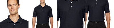 6.3 oz./yd2 / 215 gsm, 100% combed cotton pique with EZ Cool wicking technology; no-pill, no-fade, no-shrink, no-curl collar, no-wrinkle performance; Active fit; Matching flat-knit collar; Three-button placket;