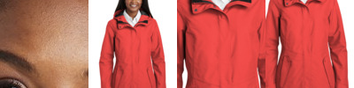 - 100% polyester knit bonded to a water-resistant film insert and a 100% polyester microfleece lining at side panels and under arms