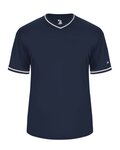100% polyester smooth pinstripe knit ; Wicks moisture away from the body ; Pad print label ; Set-in sleeves ; Full-button jersey ; Buttons spaced for easy embellishment ; Double-needle hemmed sleeves and fishtail bottom.;