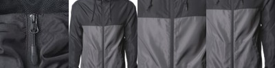 - Two large lower slash pockets with zippers