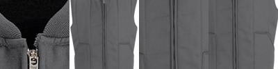 - Self-fabric collar with 8" locking zipper